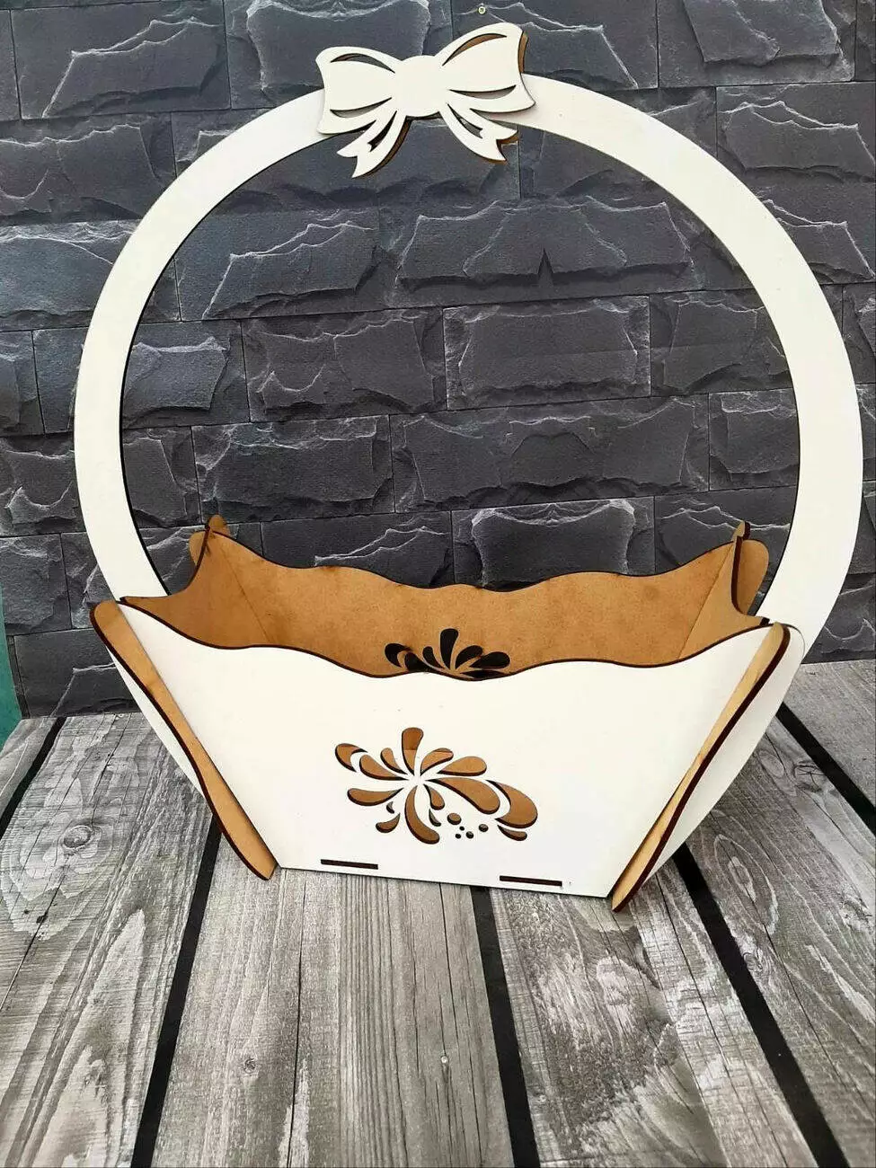 Кошик для квітів виготовлений з міцного мдф білого кольору.