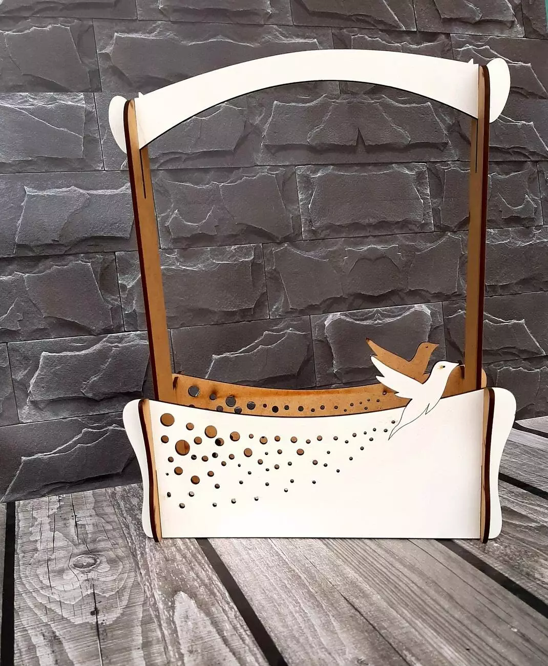 Кошик для квітів виготовлений з міцного мдф білого кольору.
