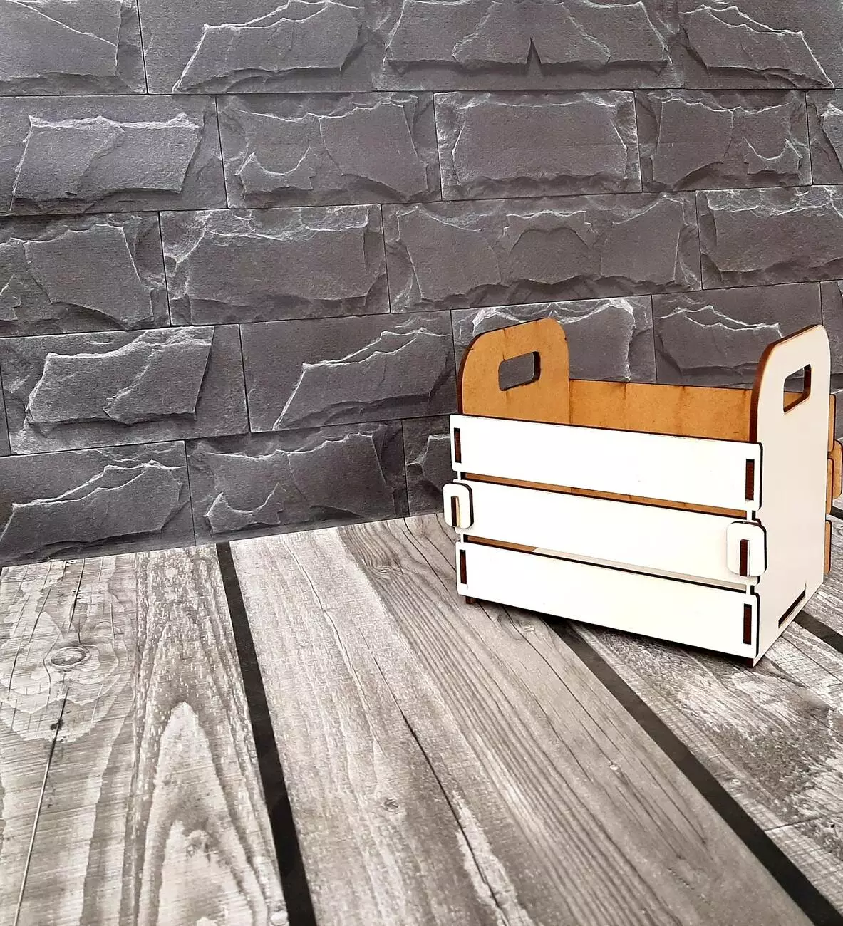 Кошик для квітів виготовлений з міцного мдф білого кольору.
