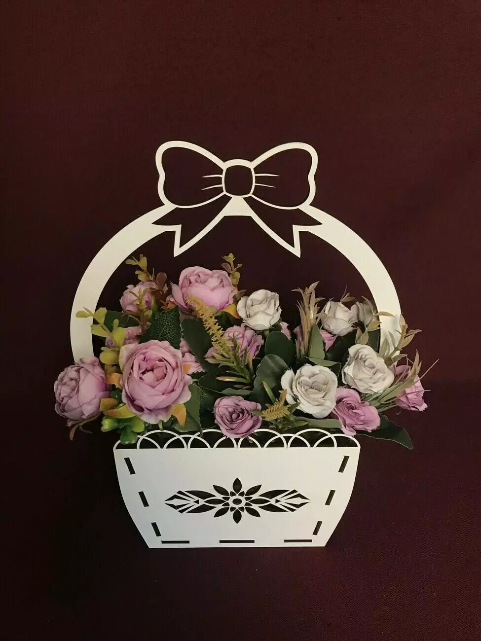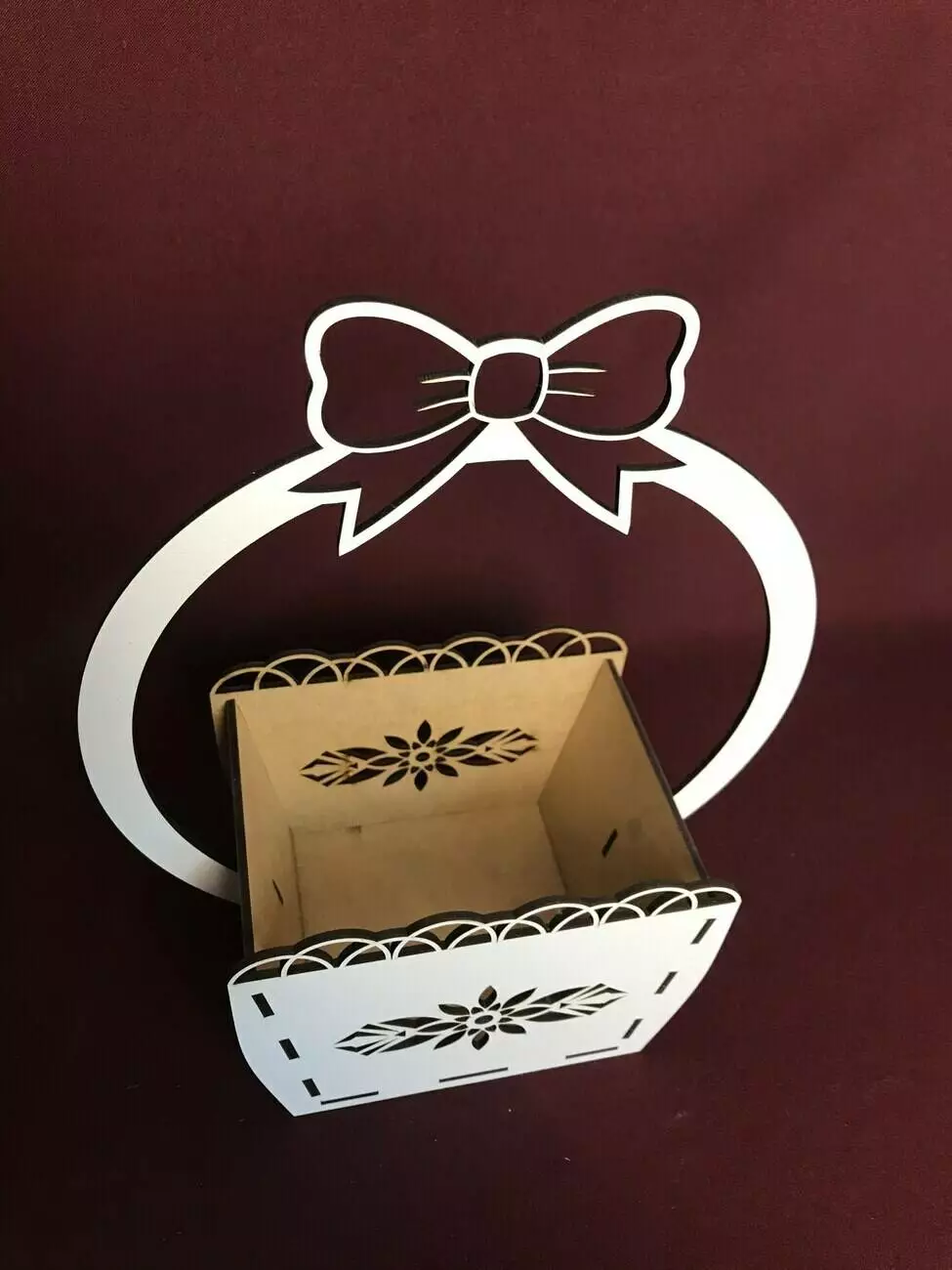 Кошик для квітів з бантиком виготовлений з міцного мдф білого кольору