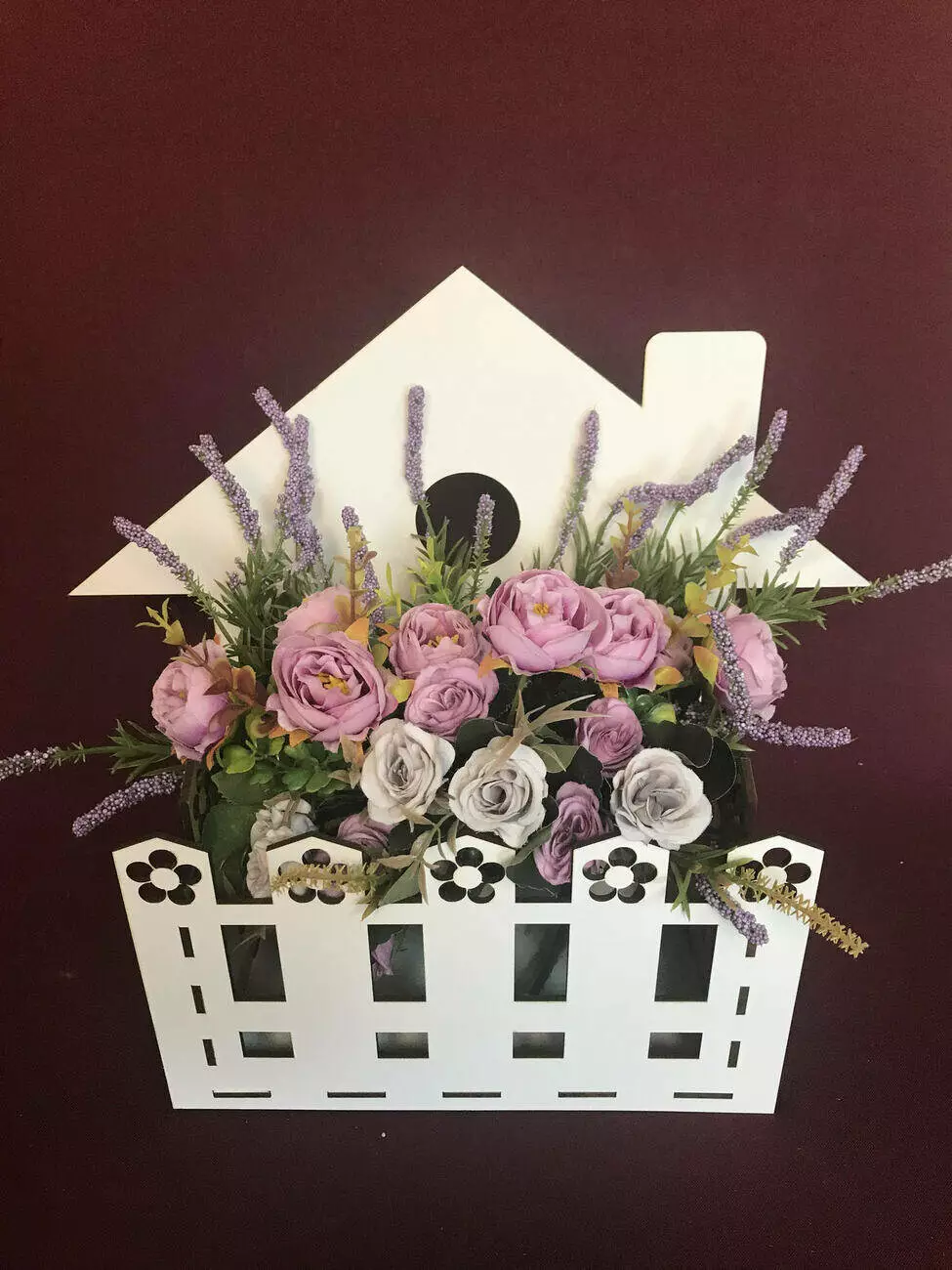 Кошик для квітів у вигляді будиночка виготовлений з міцного мдф білого кольору