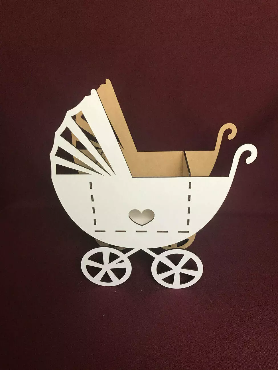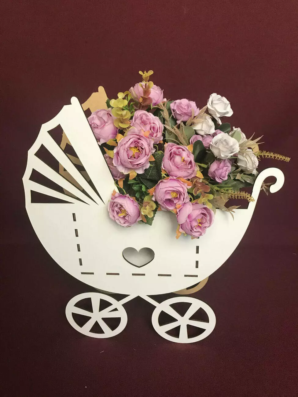 Кошик для квітів у вигляді коляски виготовлений з міцного мдф білого кольору.