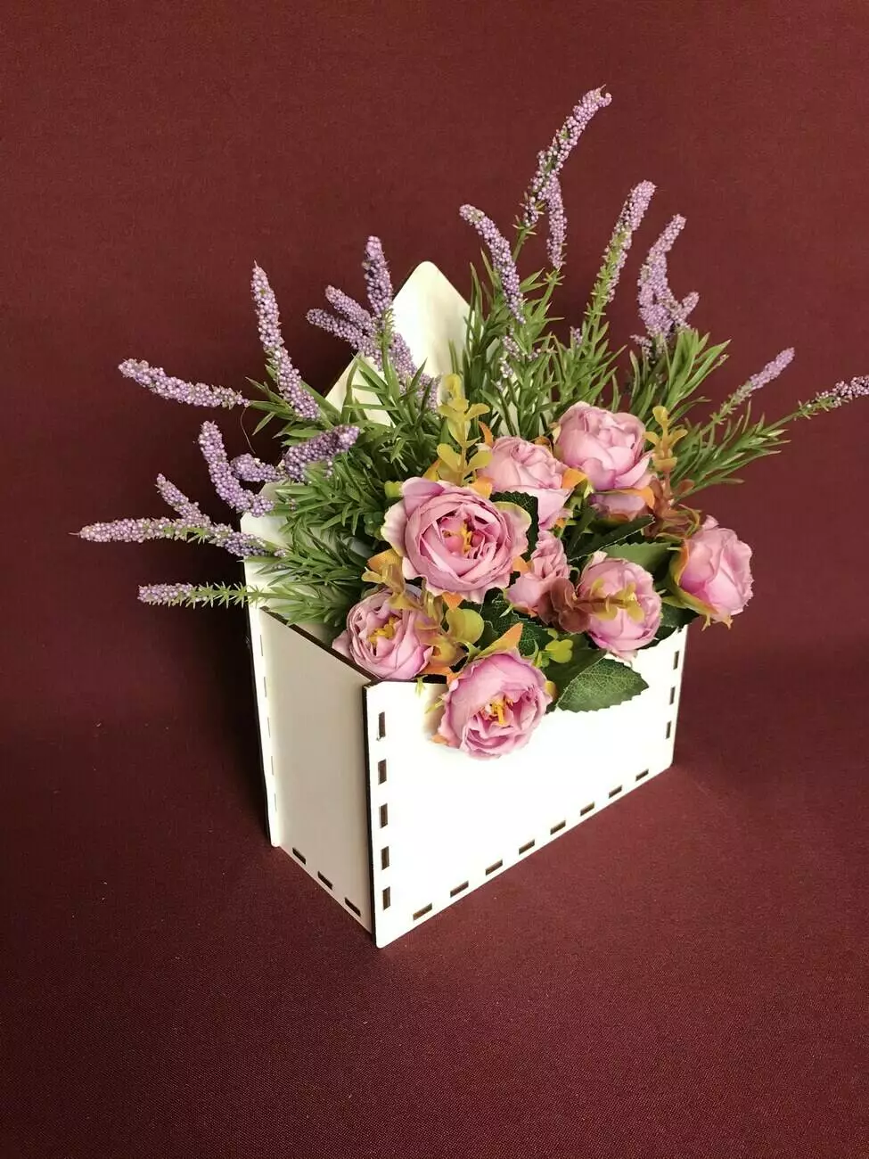 Кошик для квітів у вигляді конверта виготовлений з міцного білого мдф