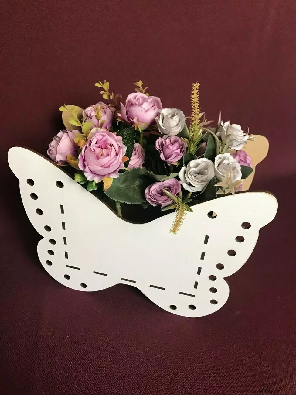 Кошик для квітів у вигляді метелика виготовлений з міцного мдф білого кольору