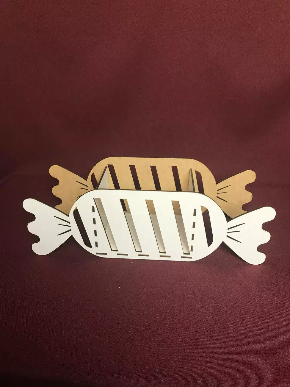 Кошик для квітів у вигляді цукерки виготовлений з міцного мдф білого кольору.