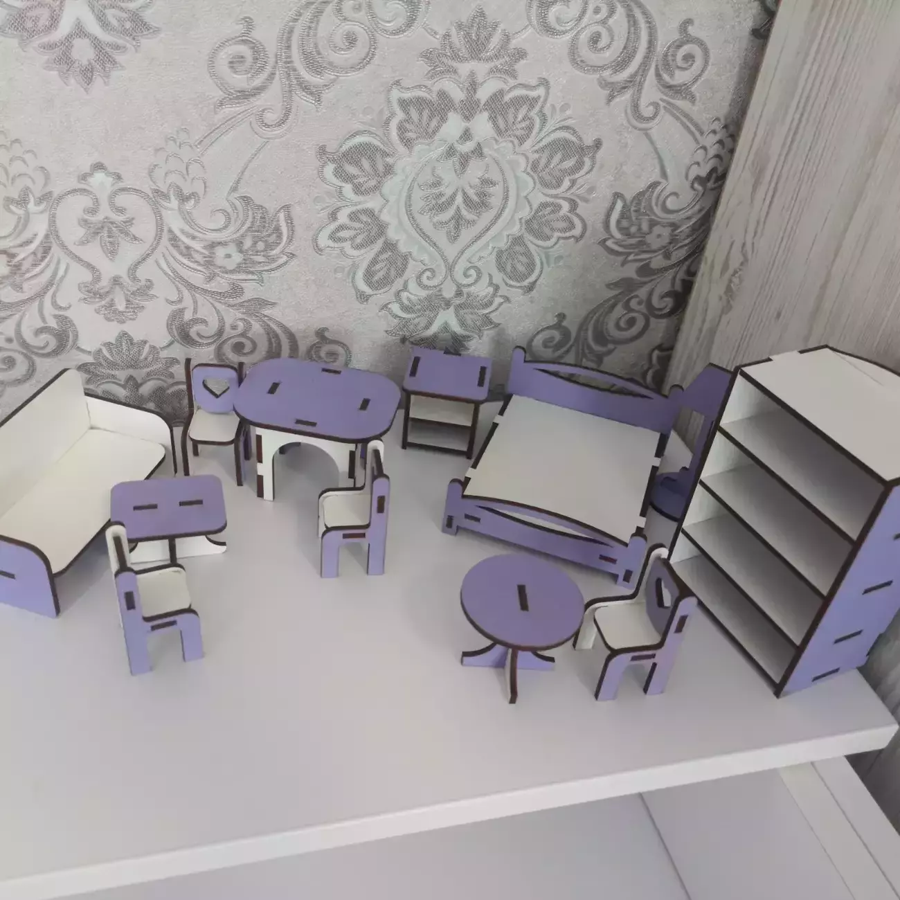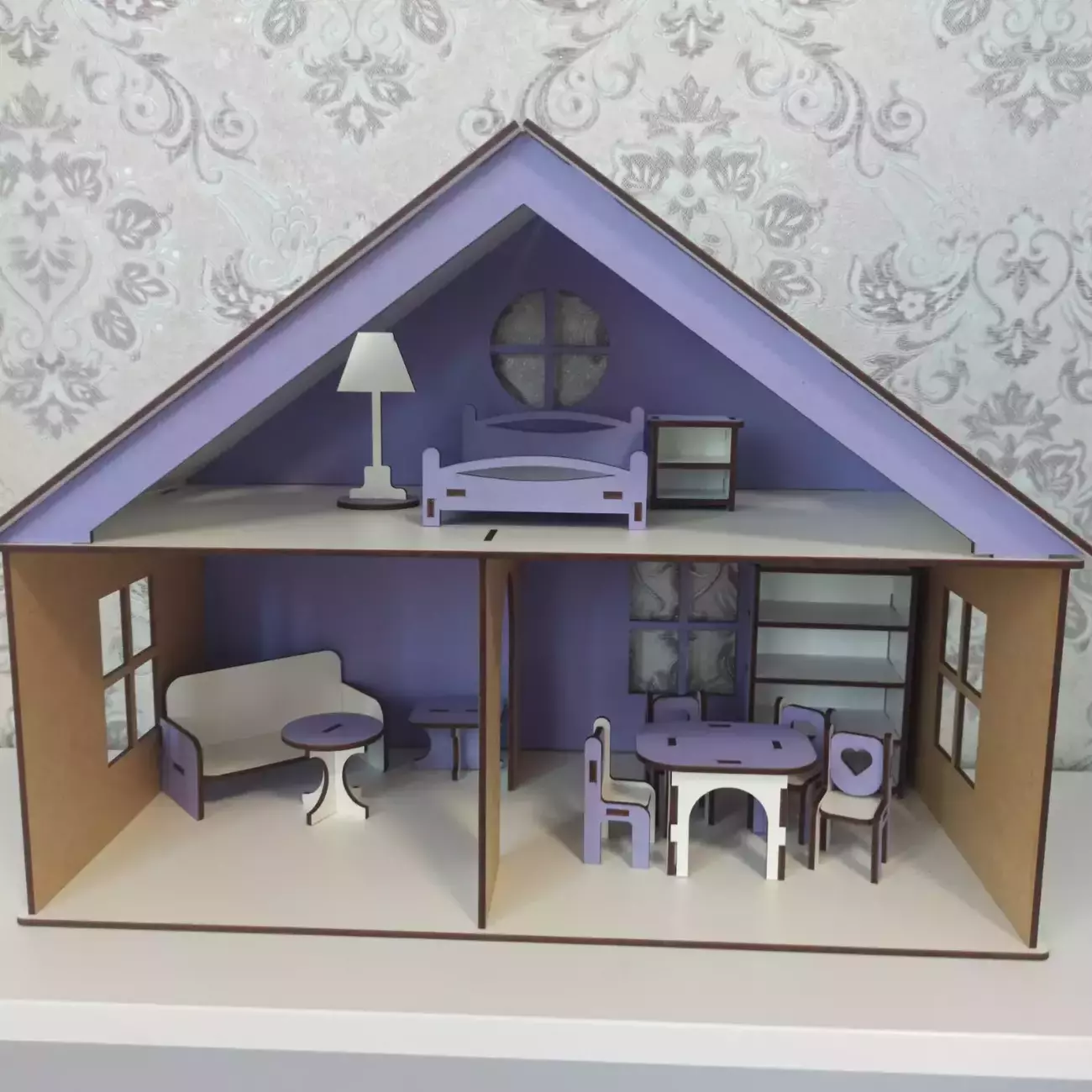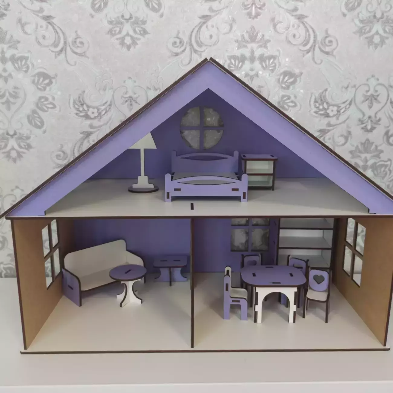 До комплекту входять: - двоповерховий будинок на 3 кімнати; - 12 предметів меблів; - інструкція. Можлива відправка в зібраному або розібраному вигляді.