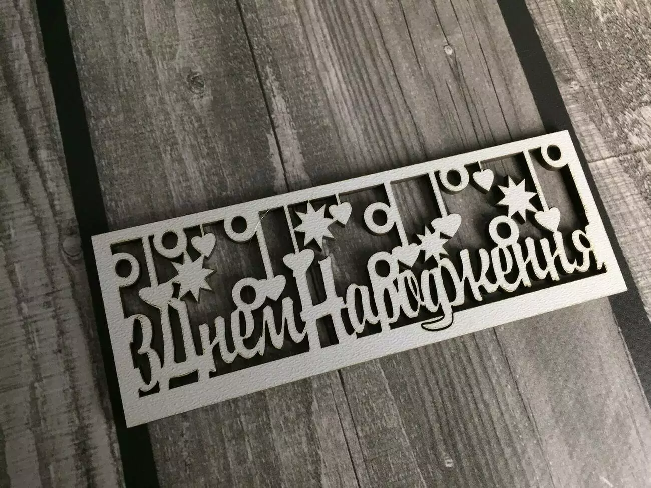 Топпер "З Днем Народження" 14*5 см ( мдф)